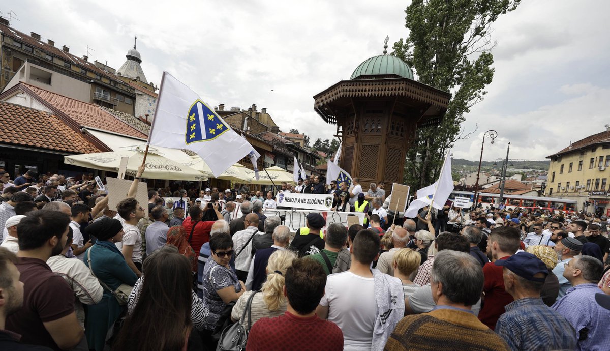 Okupljeni na mitingu su nosili majice na kojima je pisalo: “Heroj, a ne zločinac” i transparente: “Čast odbrane niko ne može pogaziti”, “Armija RBiH je ponos i čast”.